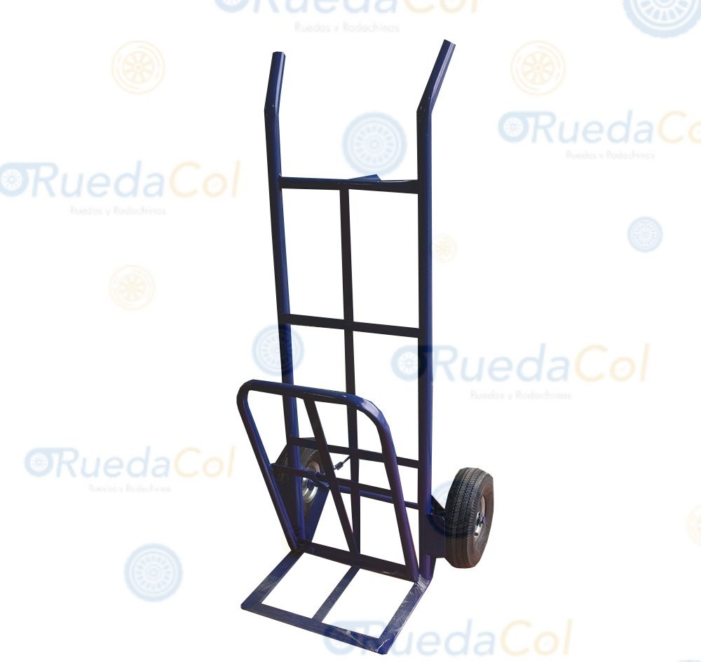 Carreta curva o plana con superficie abatíble y rueda neumática, especial para carga voluminosa.