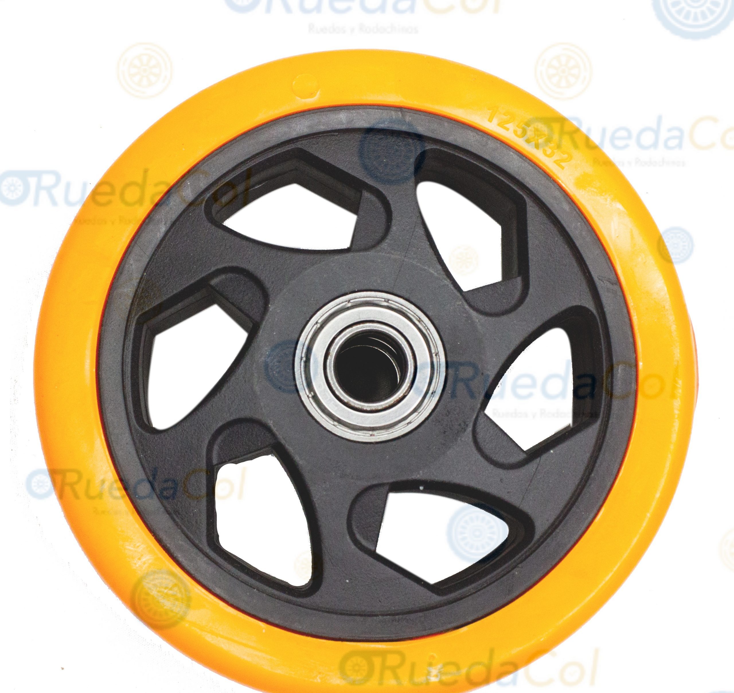 Rueda naranja en polivinil y rin en polipropileno, con doble balinera. Uso especial para vitrinas, muebles enfríadores y exhibidores en general. Disponible desde 2″ hasta 5″.