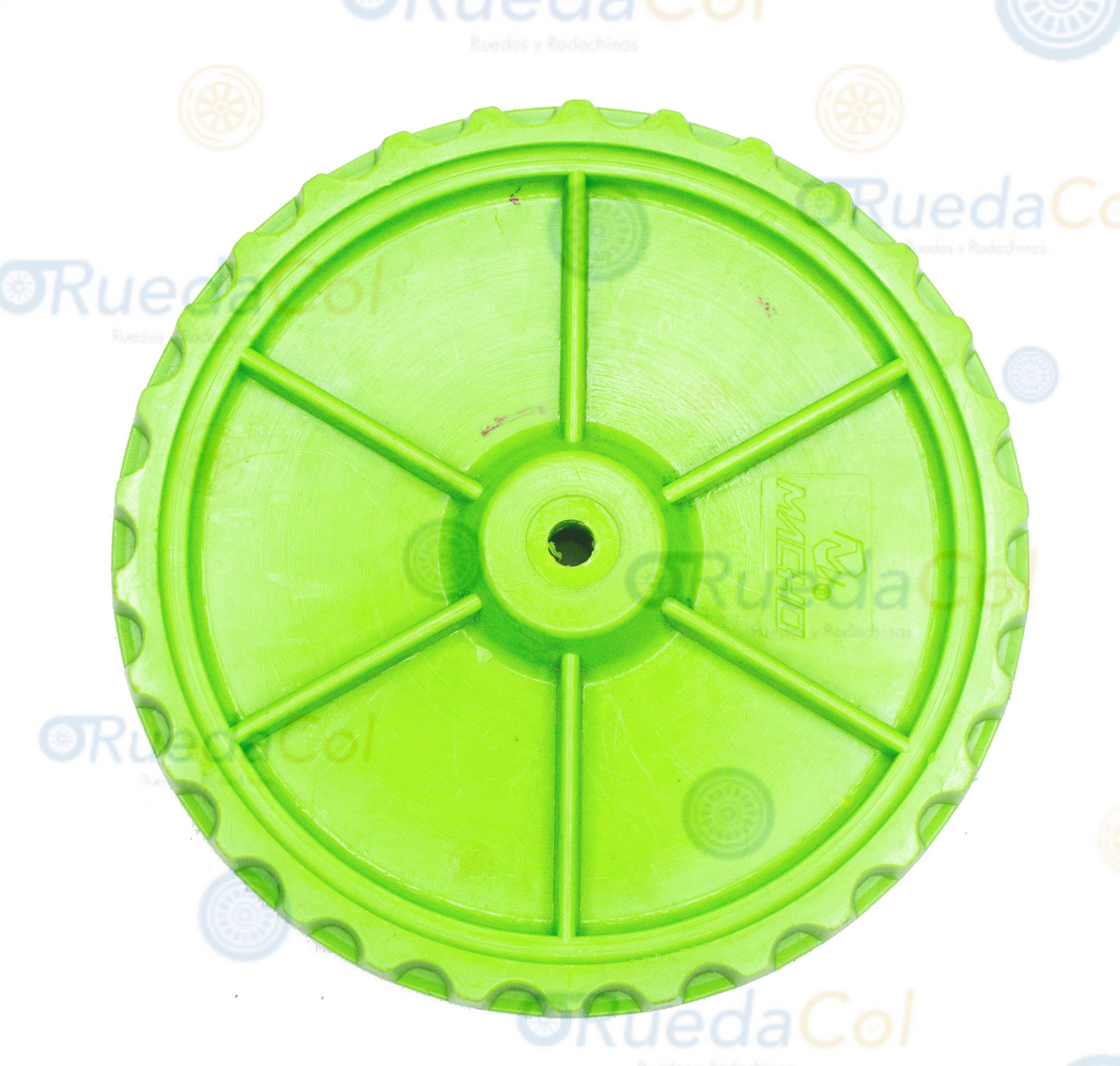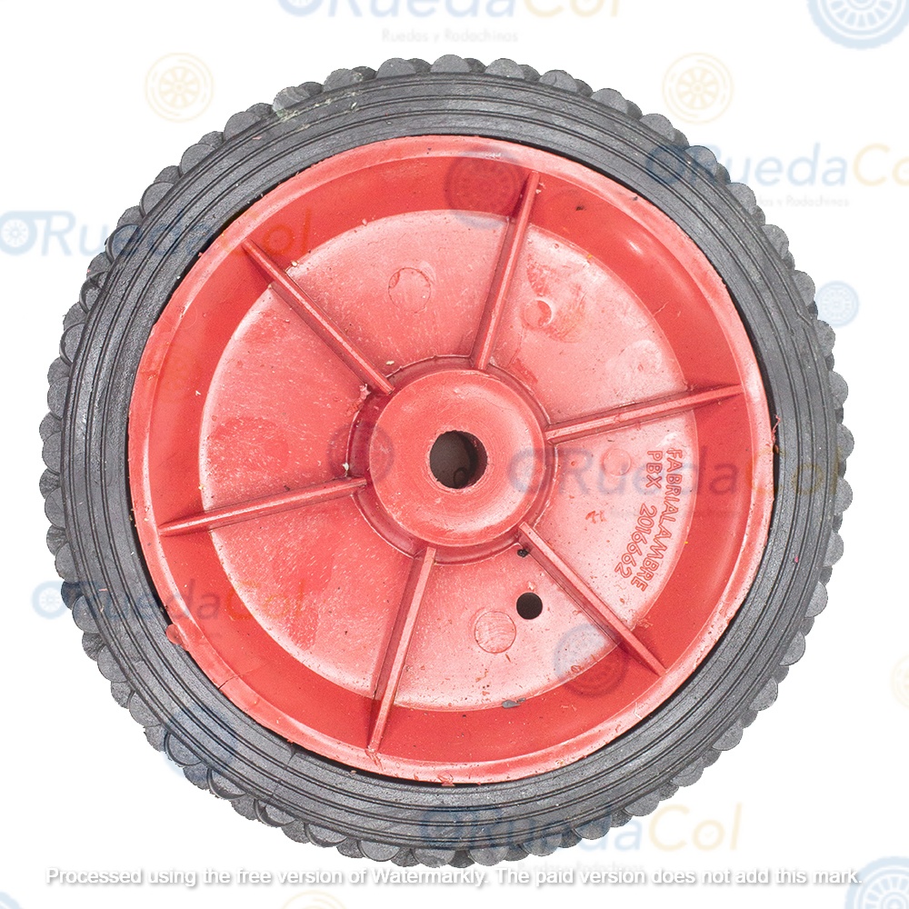 Ruedas en polipropileno, PVC y caucho uso para carros de supermercado, y/o coches tintero. Disponibles de 6 1/2″ a 8″ en color verde, negro y rojo o negro .