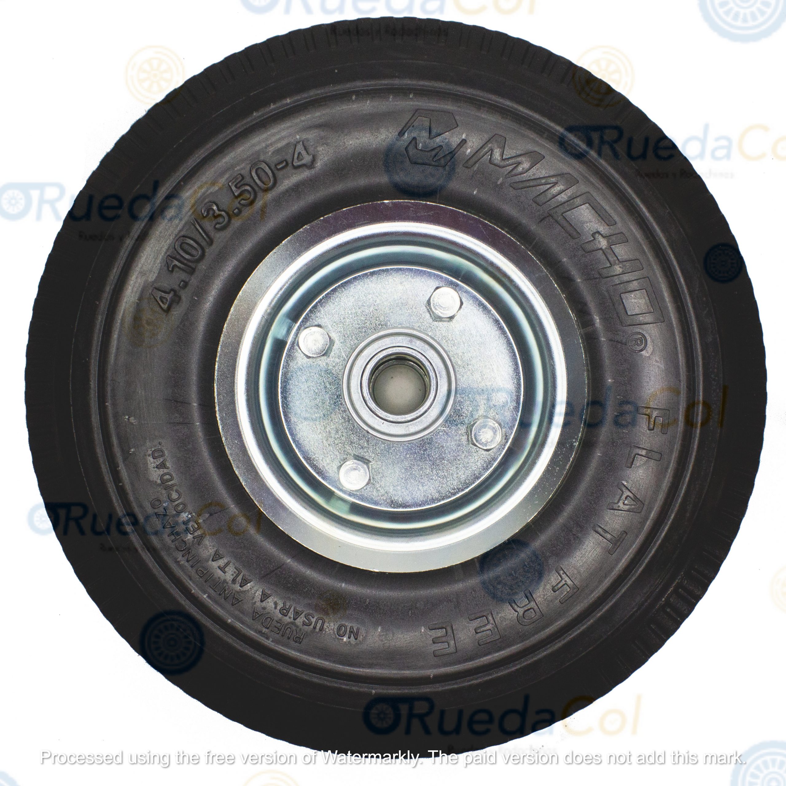Rueda maciza en caucho, con rin en lámina. Con eje de 1/2″ 5/8″ 3/4″ 1″ .