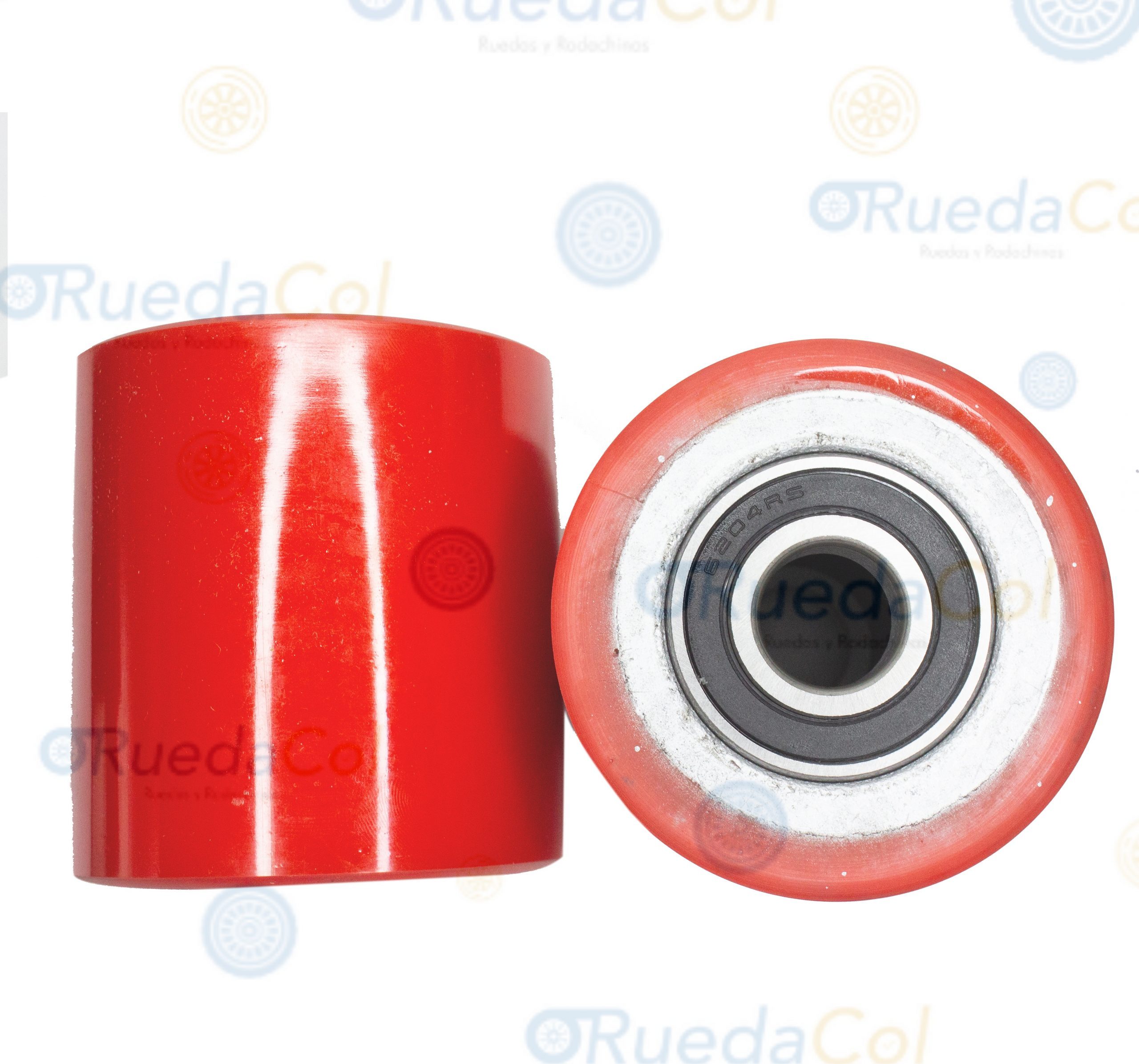 Rueda estibadora con recubrimiento en poliuretano, ideal para trabajar sobre asfalto, conservando la carga prolongada.