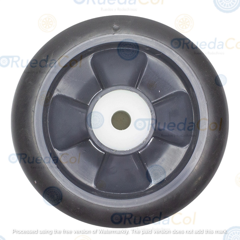 Rueda con banda en poliuretano blando y rin en polipropileno, con buje en nylon o balineras. Uso especial en hospitales, hoteles y carros especiales. Desde 6″ hasta 10″.